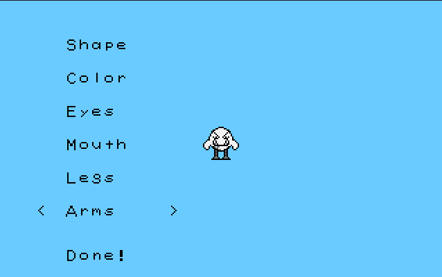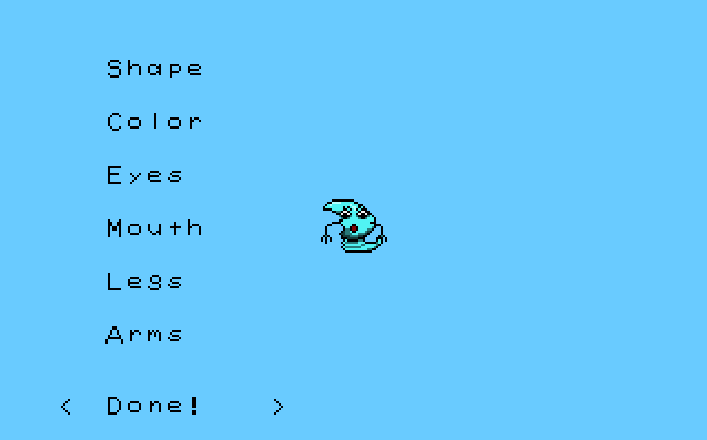 It is a simple part-swapping DYI creature building game for MS-DOS. Take your time experimenting with the different parts and discover their unique names!